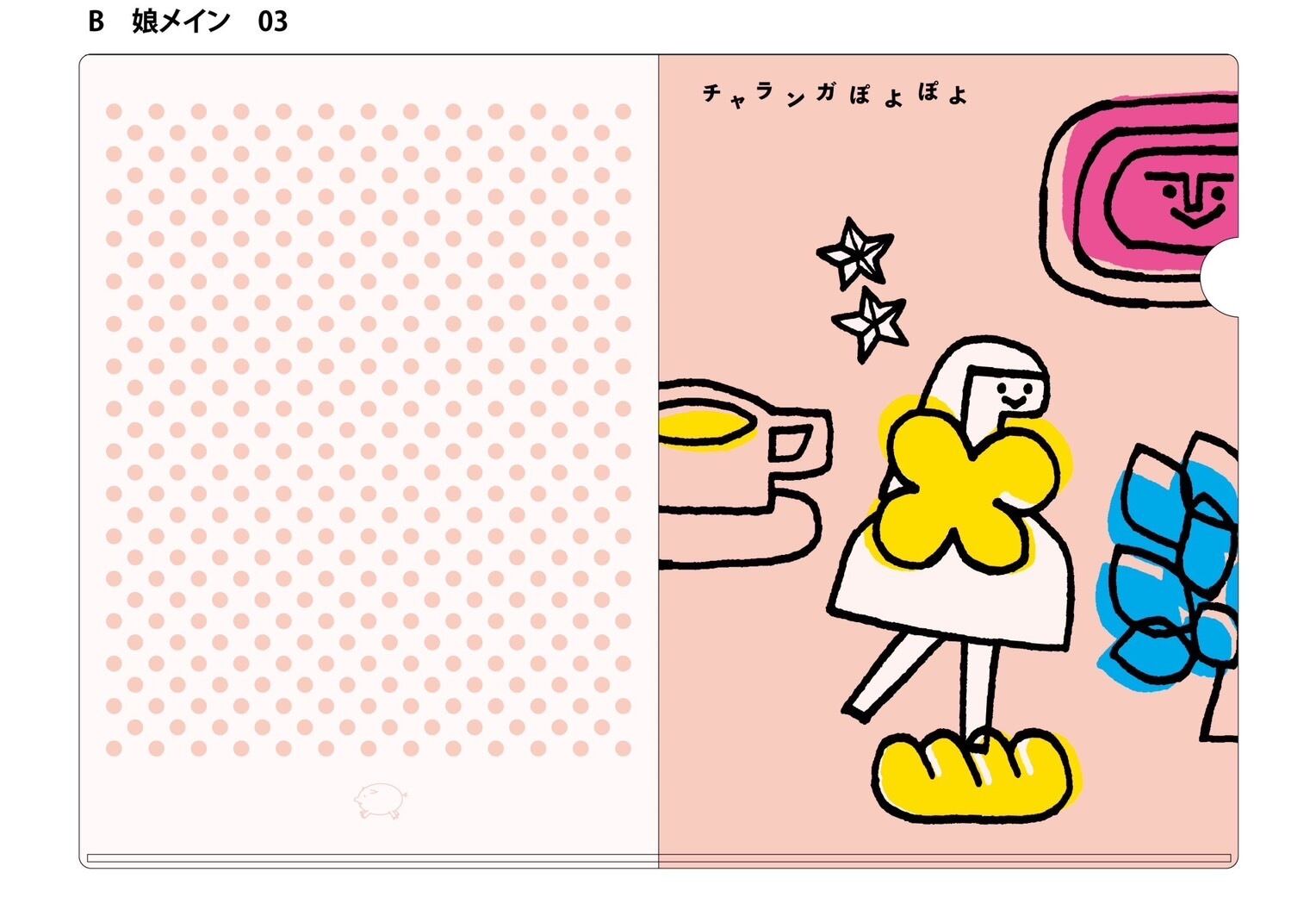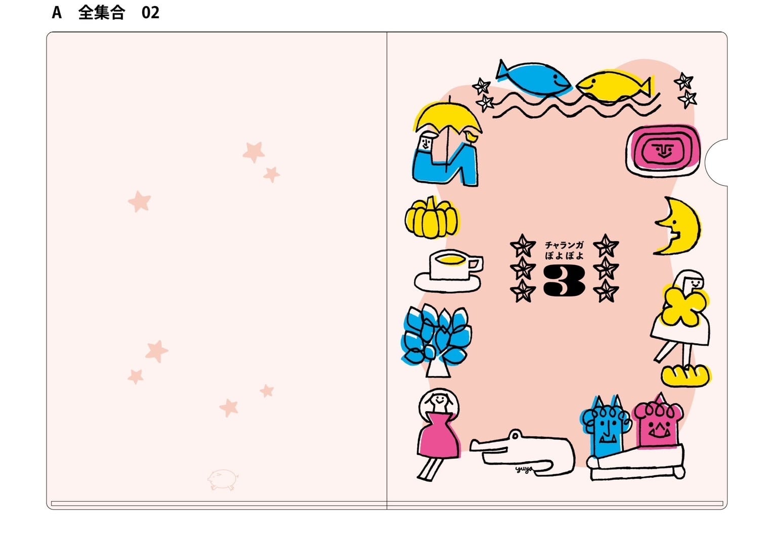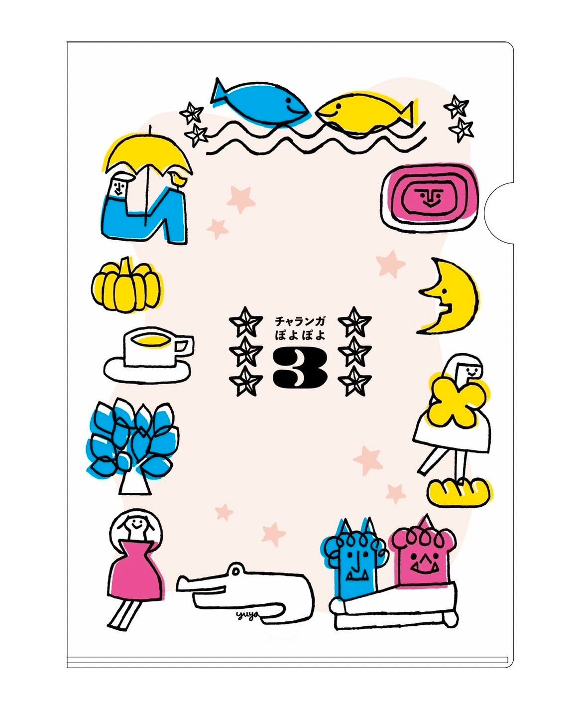 CD「チャランガぽよぽよ3」のデザインによるA4クリアファイル3枚セット。楽譜、メモ、レシート、健康診断の控えなどなど入れちゃってください!(ピンク部分は透けている部分です)
